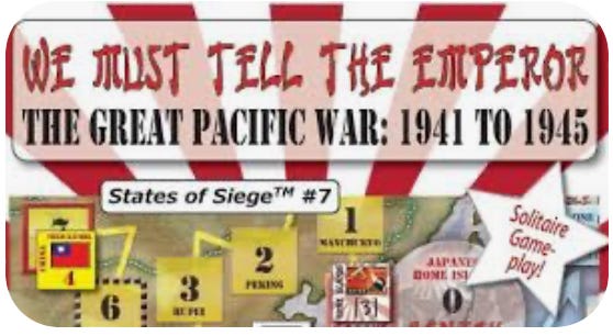 I vehemently disagree with these defeatists. They remind me of accountants and old maids, not determined warriors hell-bent on victory and glory despite the fearsome odds against them. Look, this is a game. I want to maximize my enjoyment. Sitting back, getting creamed, hoping for the best and looking forward to getting my three kamikaze chits is not my idea of fun. I want to win, and I want to have fun. So, when I play “We Must Tell the Emperor”, I take on a persona. I am the steely Bushido warrior faithfully serving his Emperor. I am not some vague incarnation of the spirit of Japan. I am a confidant to his majesty liaising with the government and leaders of the Army and Navy. My duty is to coordinate these fractious elements to serve the Emperor and lead the Japanese Empire to take its rightful place as an equal with the great powers. Got it?